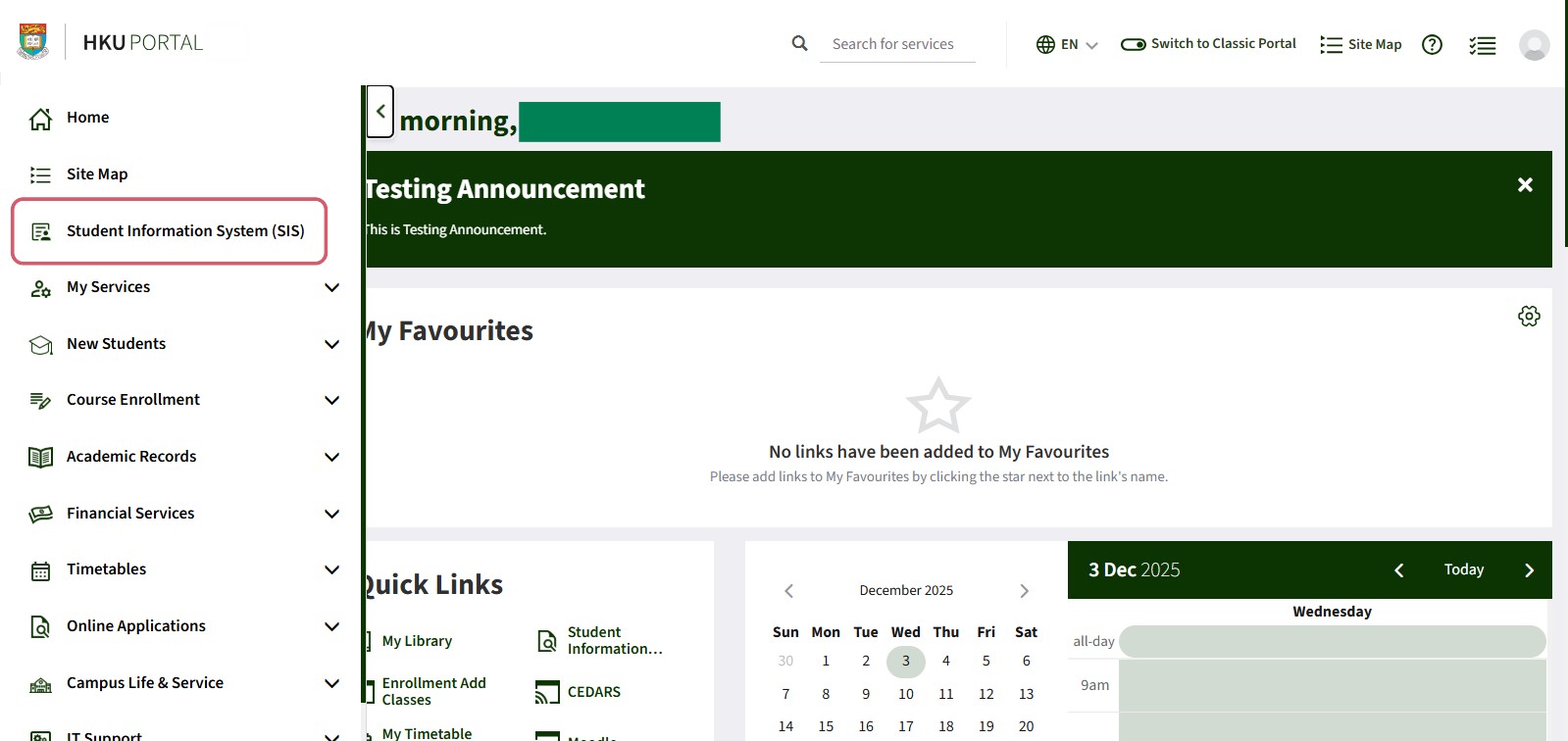 - On the collapsable menu on the left, click “Student Information System (SIS)” (see the screen capture here)